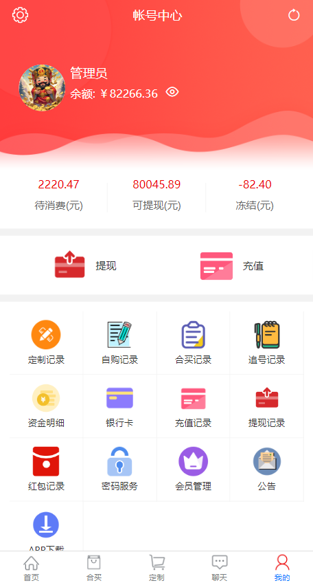 这款彩票系统主要是做彩票合买功能玩法,还有定制功能玩法,最有特点的是包含im聊天功能,可以建群,可以加好友发红包、发时时彩计划、彩票合买跟投等等