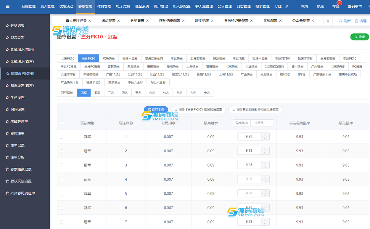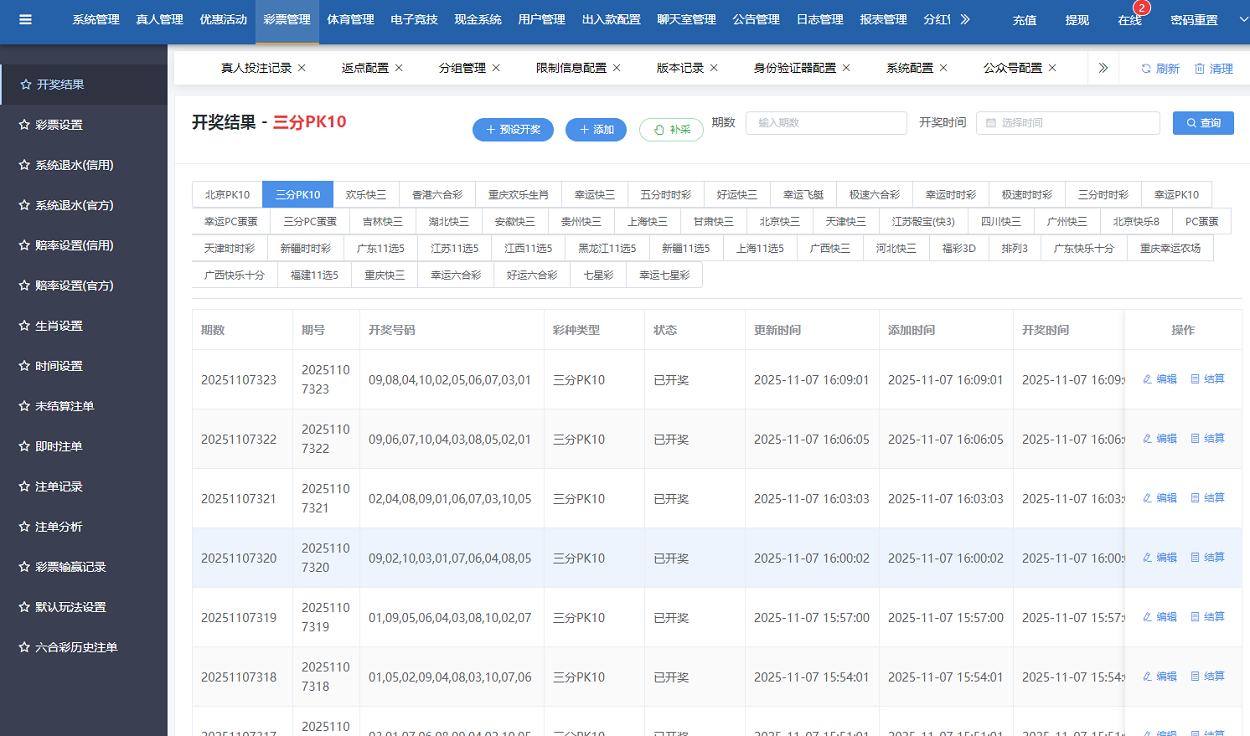 支持自定义彩票玩法、赔率、开奖时间等设置
