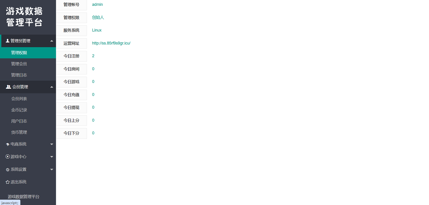 9.进入后台登录地址域名/admin 账号admin 密码123456,进入后台游戏管理修改服务器ip