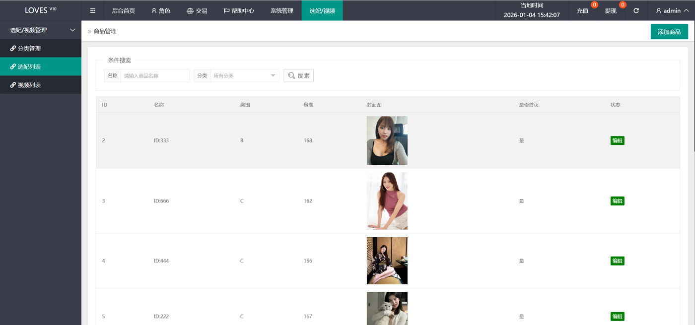 后台可以添加选妃、色色视频数据,也可以自己写个自动更新视频的脚本,现在前端的视频可以正常看,视频就不截图出来了,带颜色,但是封面图片失效了,需要更换一下